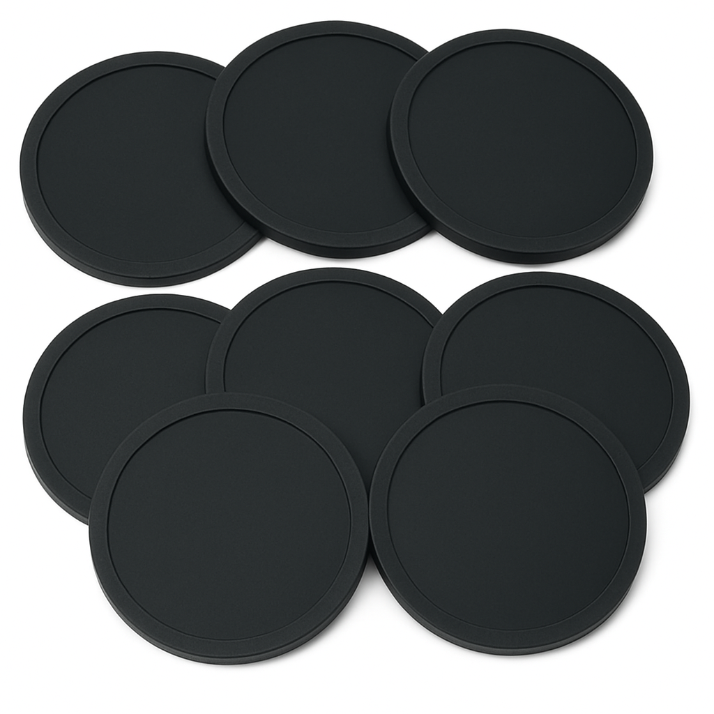 Essenchy 8pcs Black Silicone Thick Design Round Mug Coasters For Tea, Coffee, Beer, Cocktails